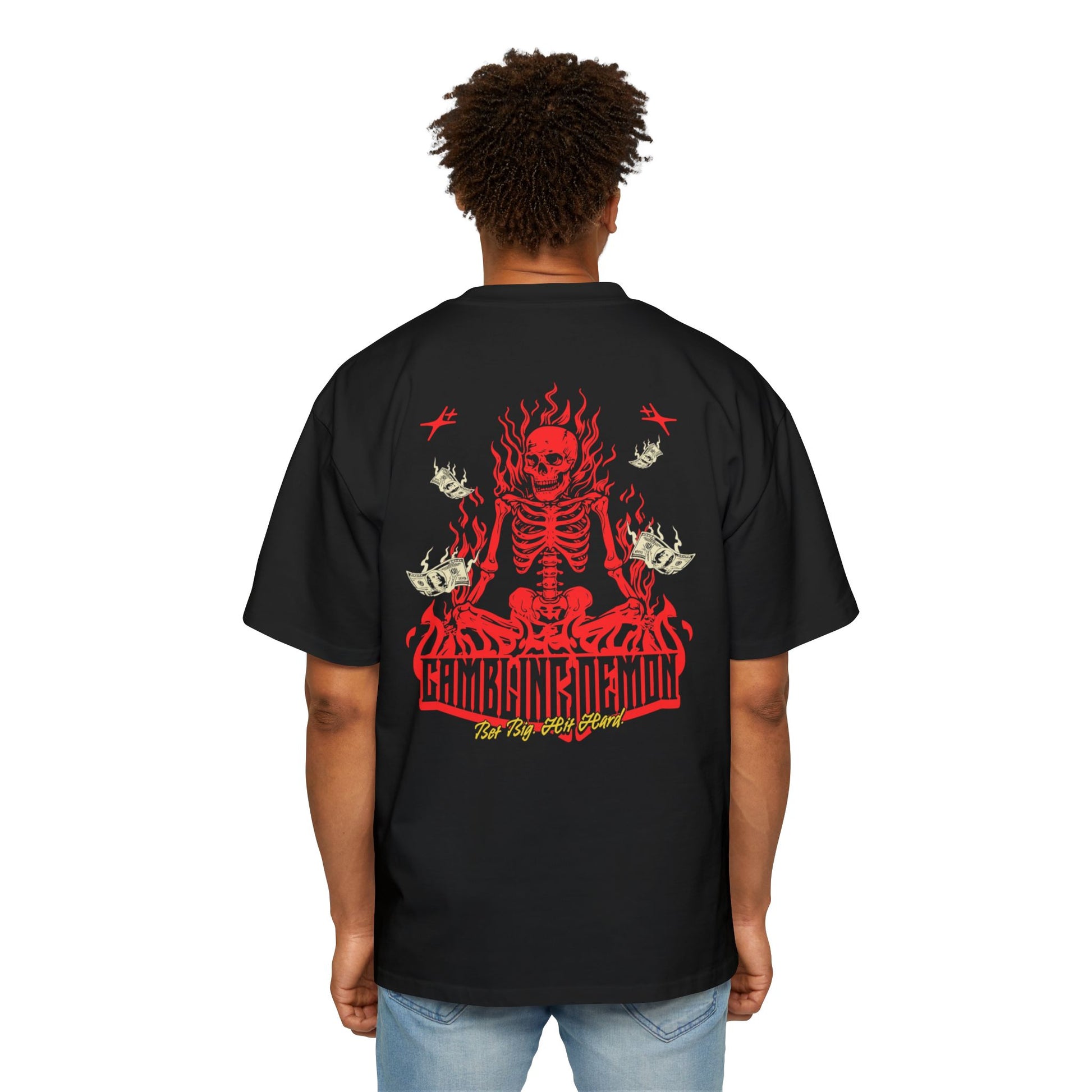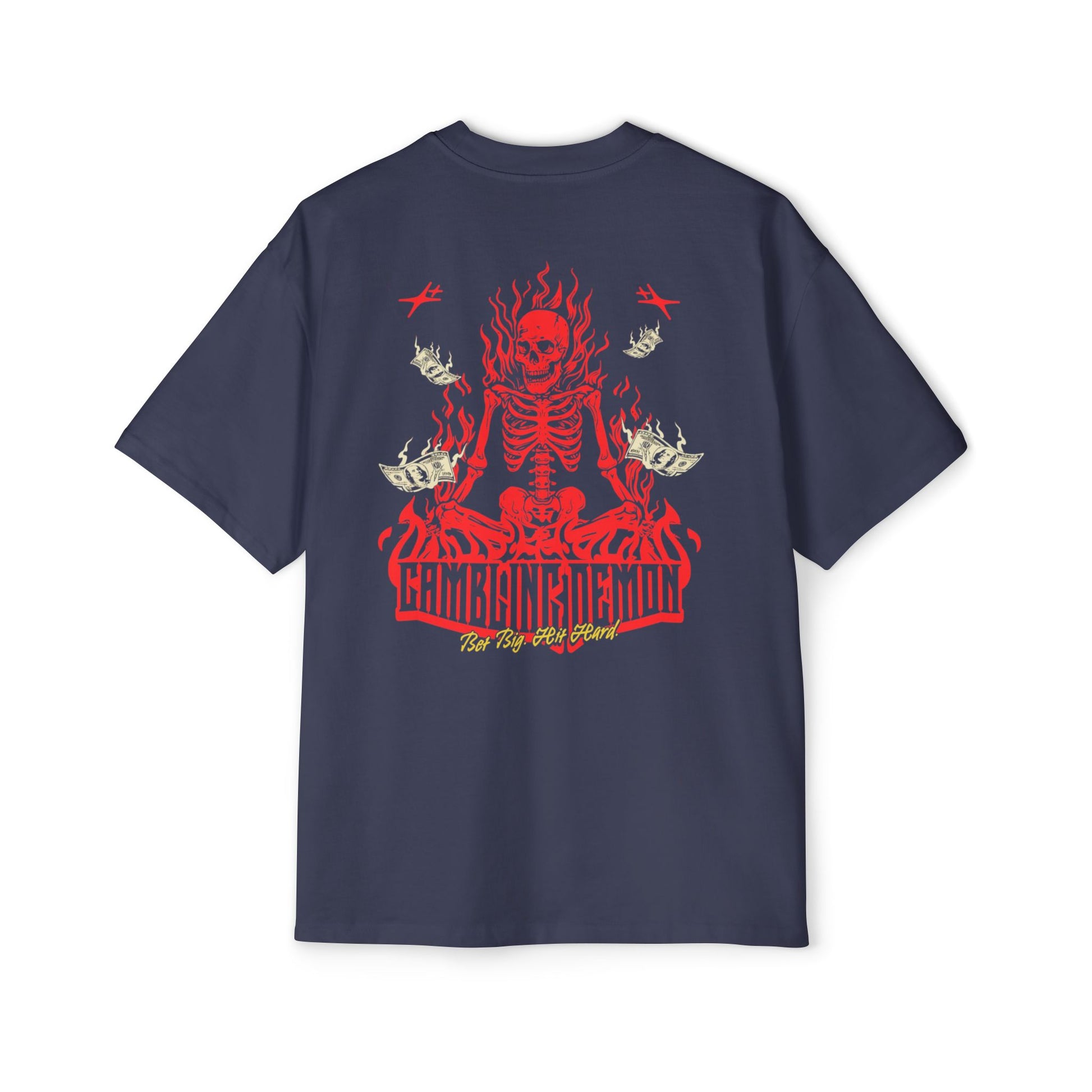 Red Flaming Skeleton Graphic Tee — Heavy Oversized T-Shirt
